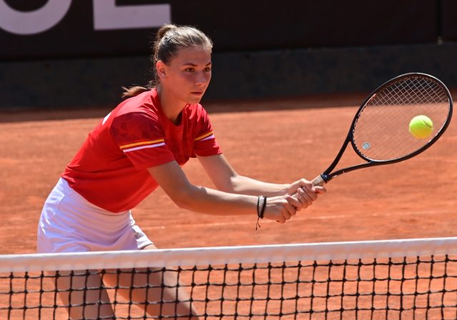 Во првиот сет македонските тенисери имаа постојано водство најпрвин 2:0, а потоа и 4:1, но противничките најавија неизвесност само за кратко откако се доближија на 4:3. Сепак следните два гема ги освоија Динева и Симева и сетот заврши со резултат 6:3. Во вториот сет по 1:1 во гемови нашите тенисерки направија серија од три гема за водство од 4:1 што на крајот се покажа за решавачко за освојување на сетот со 6:3.