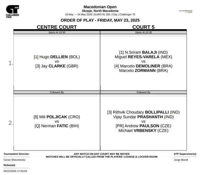 Полуфинални пресметки на Macedonian Open 2025 - петок 23.мај