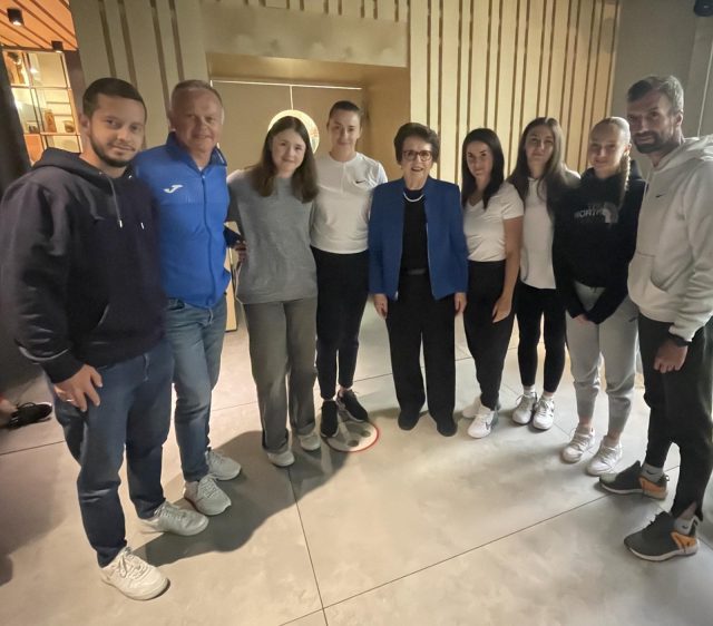 За време на натпреварувањето во Вилнус, нашиот женски национален тим со тренерите имаше и средба со Billie Jean King, тениска легенда која во својата кариера беше во еден период и најдобра светска тенисерка, а кариерата ја заврши со 129 турнирски победи, од кои 12 Грен Слем титули (со победи на сите четири Грен Слем турнири). Нашата екипа ја оствари средбата каде нашите тенисерки имаат можност да научат од една од најдобрите тенисерки во историјата.