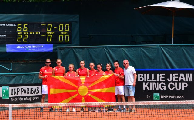 08/07/2022 Македонската репрезентација со денешната победа од 2:0 над репрезентацијата на Косово обезбеди место во Финалето на Били Џин Кинг Купот. Утре, сабота на централниот терен во ТК ЈУГ, ќе се играат финалните мечеви со репрезентацијата на Португалија. Победникот од финалето ќе обезбеди свој влез во втората Евроафриканска група.